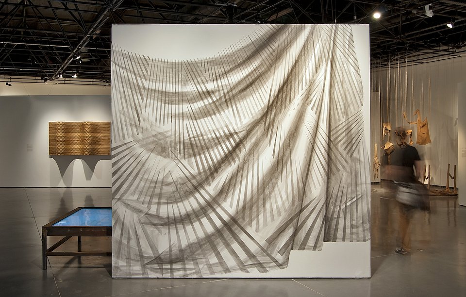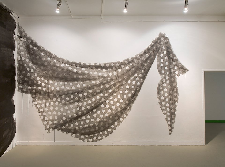“Suprise”, 2014, Eretz Israel Museum, Tel Aviv, House paint on wall. Part of “Woven Consciousness” curated by Irena Gordon