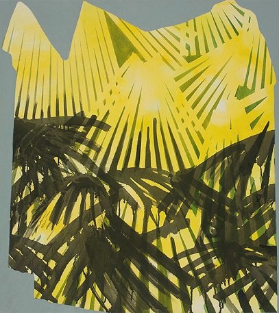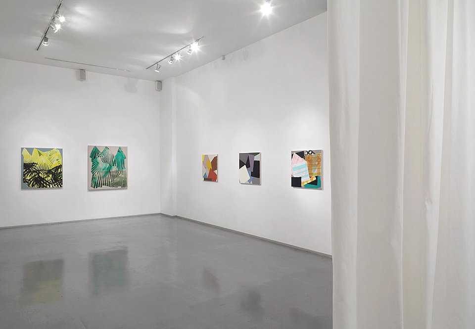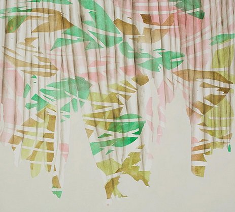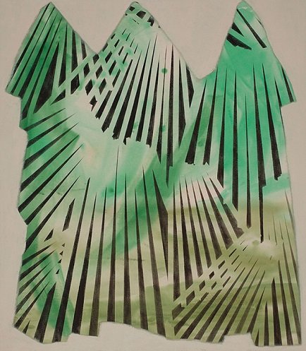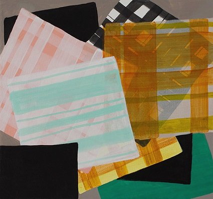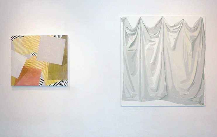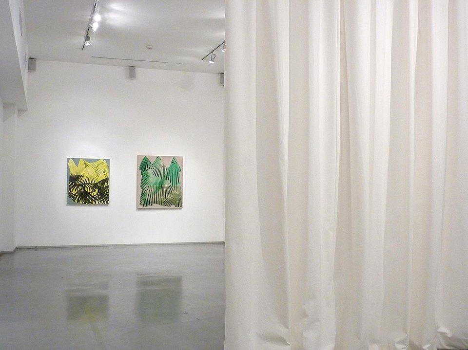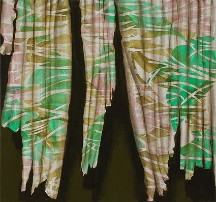 ובין שני אלו, מגוון וריאציות ציוריות המשחקות על התווך שבין התלת-ממדי העשיר מזה, לבין הדו-ממדי האנורקטי מזה. וריאציה אחת היא העבודה שבה מוצגות מפיות נייר שכמו מונחות על בד וילון גלי ומוצלל, המעניק להן נפח (Cuban Curtain Wall). וריאציה אחרת היא העבודה שבה הוילון הגלי והמוצלל כמו נקרע לגזרים, וחושף מאחוריו את הדו-ממדיות המעיקה של בד הציור עצמו (Reggae).