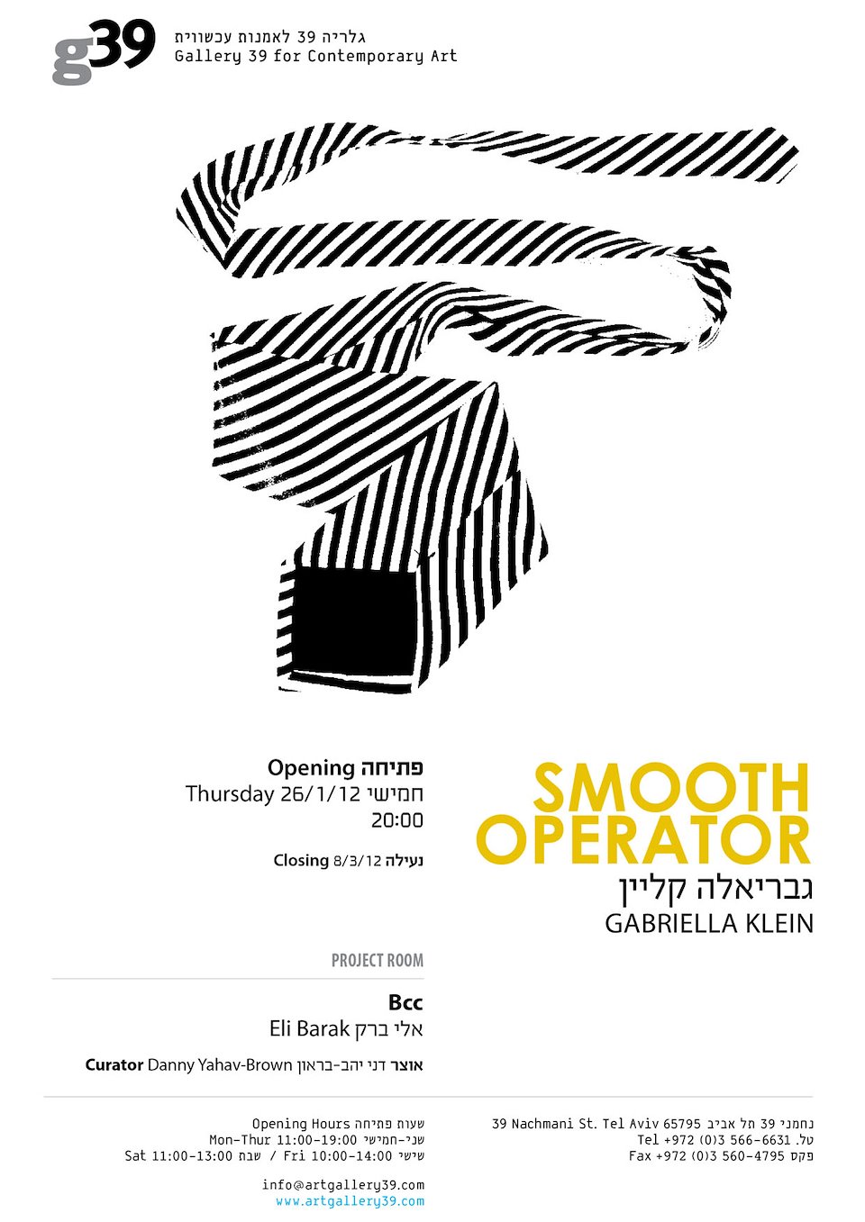 יותר מכל, עבודותיה החדשות של גבריאלה קליין – המוצגות בתערוכה Smooth Operator – הן תיאור של מאבק. המאבק הניטש על הבד הוא בראש ובראשונה זה שבין הממדים: התלת-ממדי מזה והדו-ממדי מזה. מצד אחד, המבט פוגש בפיגורציה הווירטואוזית של קפלי הבד הלבן, שכמו בולטים החוצה מהציור (Drop Cloth). מצד שני, המבט פוגש במשחק הריבועים בעל הניחוח המלביצ’י של המפיות הצבעוניות המכסות זו על זו (Formalities).