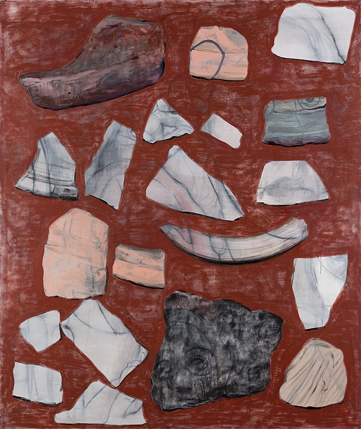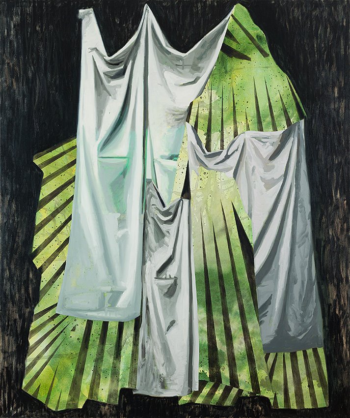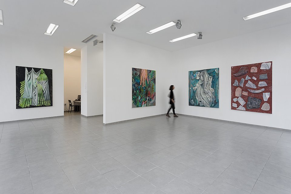 “Large-scale canvases that are larger than life, theatrical, describing what is closely, or too closely, observed. These paintings occur for the eye, rising in front of the eye and flirting with it .Each painting is like a scene from a play, a riddle, or rather the remainder of a riddle, a puzzle in a deaf mute language, a primal language that needs no words”.