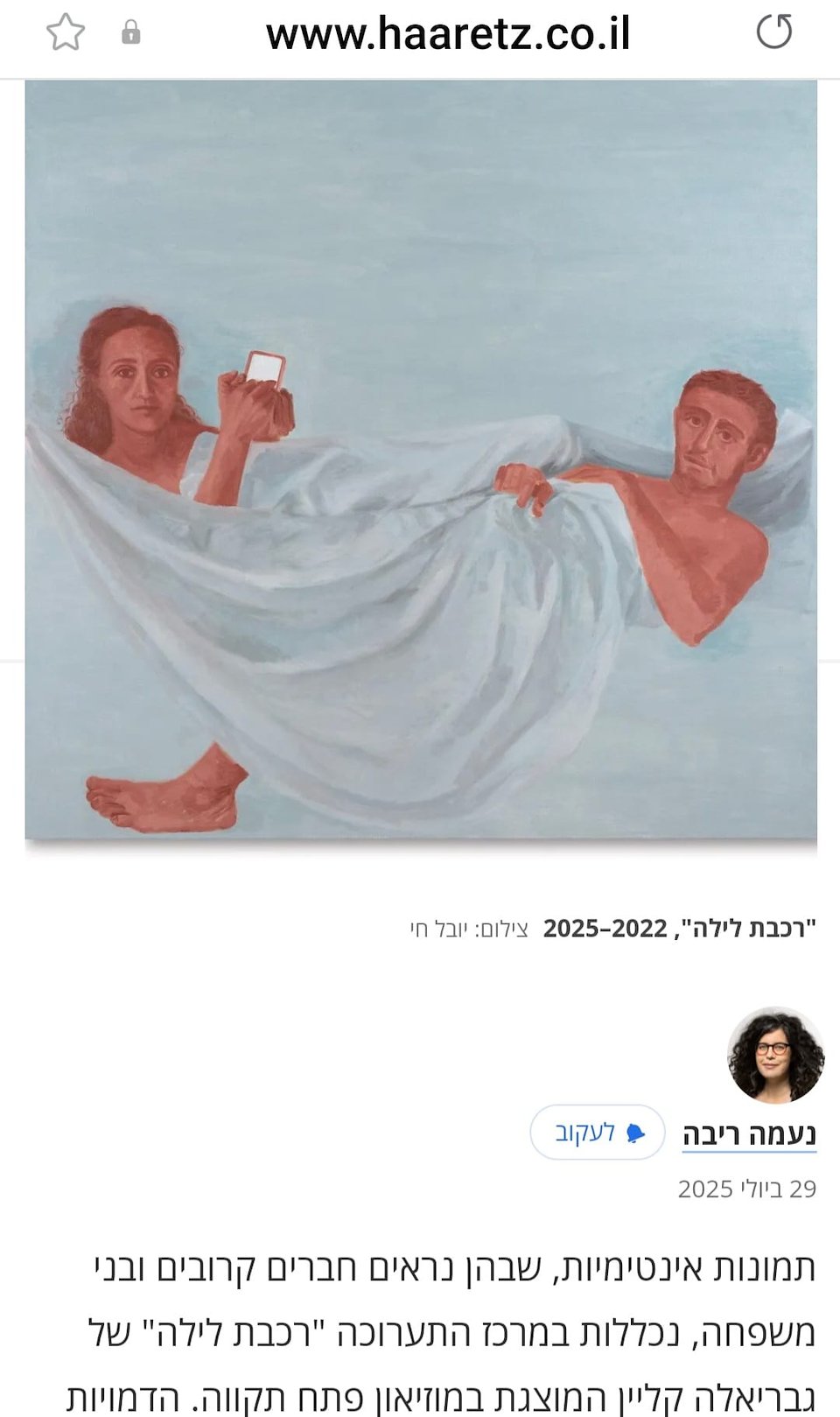 "Spooning" 2015, has been purchased as part of Tel Aviv Museum's permanent collection--Rappaport Family Foundation. Now on view https://www.tamuseum.org.il/en/exhibition/skein-new-acquisitions-bruce-and-ruth-rappaport-israeli-art-collection/